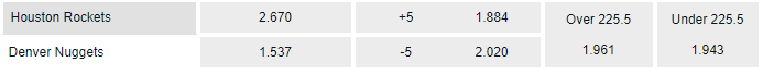 Most recently as already mentioned, Houston beat Denver on the road this season 109-99 as underdogs covering a +4.5 handicap while the given total 214.5 pts resulted in an under as the total points scored was 208.